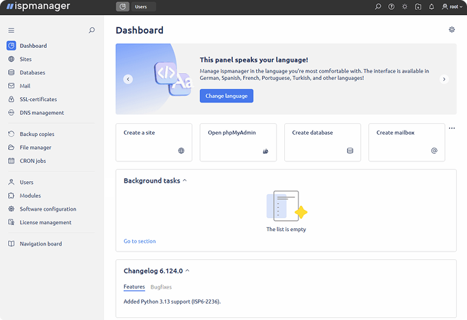 Enjoy your VPS experience with the ispmanager control panel, even if you’re a beginner.